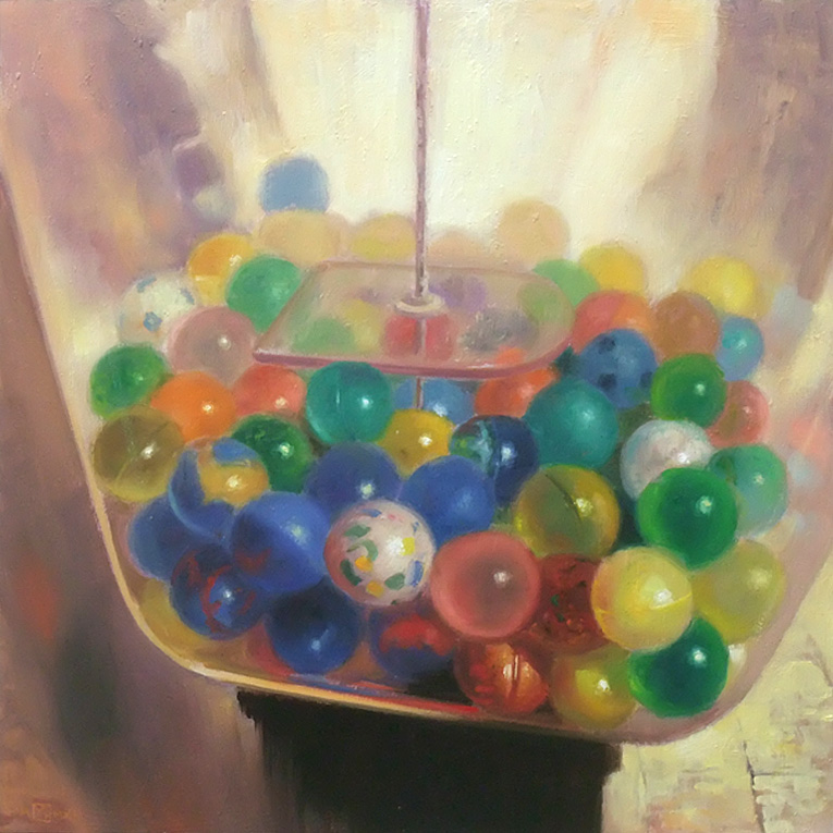 Merry Christmas everybody! I finished this painting on Christmas Eve so I though that I would post it today. It is of a superball vending machine on Brighton seafront and actually took three days to paint as the balls took some time to get right. 12" x 12" oil on board.